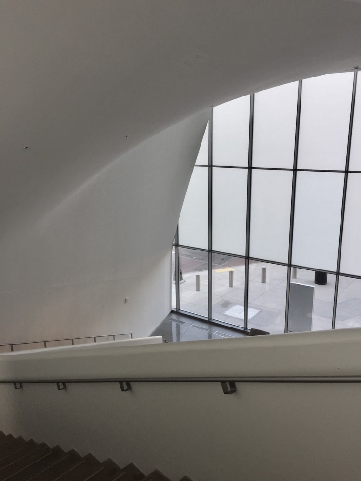 BASWA Phon was integrated throughout the first floor and 33-foot-tall central forum, to reduce the standard reverberation, or echoing, that would occur in a building utilizing high ceilings and hard surfaces. Despite the use of hard surfaces, a 33-foot high ceiling being juxtaposed to glass and the open floor plan of the museum, the museum is tranquil with the integration of BASWA Phon.